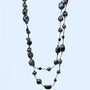 Our Metallic Yarn Bead Necklace is made with high-quality zinc and metallic yarn, delicately beaded with sparkling crystal glass and lustrous freshwater pearls. This combination of materials creates a stunning piece that is 56 inches in length, making it the perfect addition to any look.